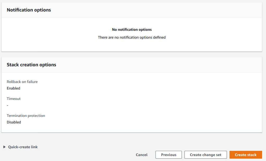 Wait for the next page to tell you that deployment is finished. It will display a green checkmark and CREATE_COMPLETE on the left side of the screen, like in the above picture. This will take several minutes, so be patient! Click Outputs from the top toolbar.
